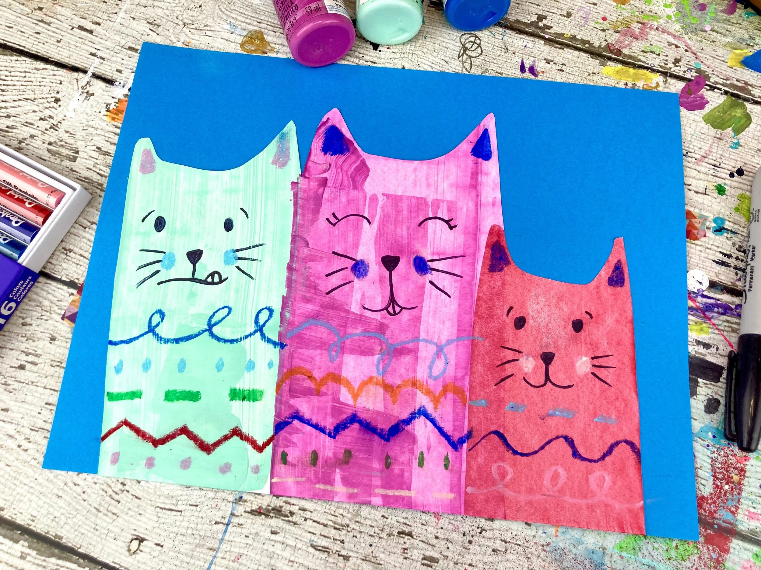 In this lesson, students will use a paint scraping technique and basic patterns to create cute, pop-art style cats!